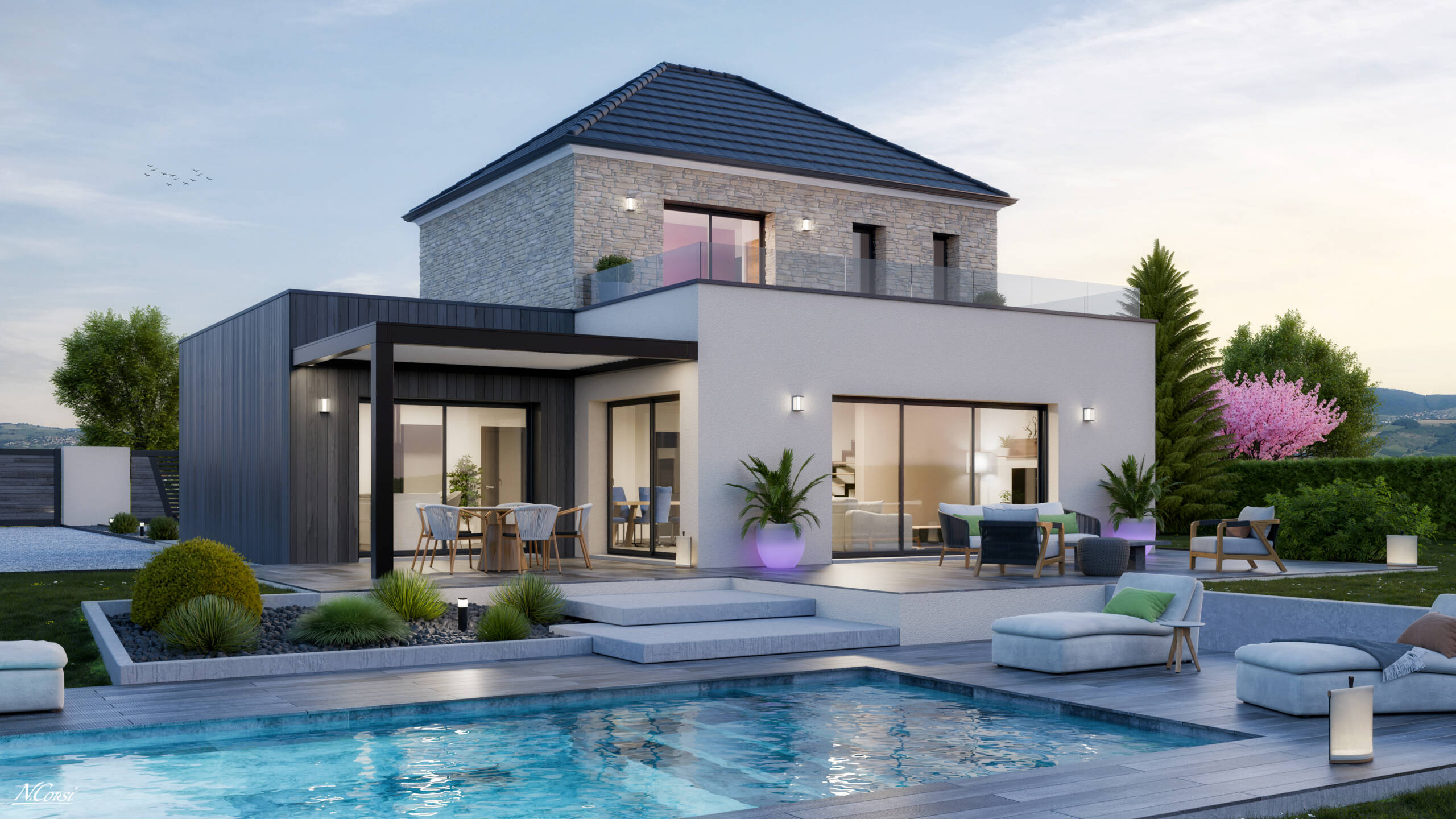 Découvrez ÉLÉGANCE, la maison aux lignes épurées et au toit plat qui redéfinit la modernité.